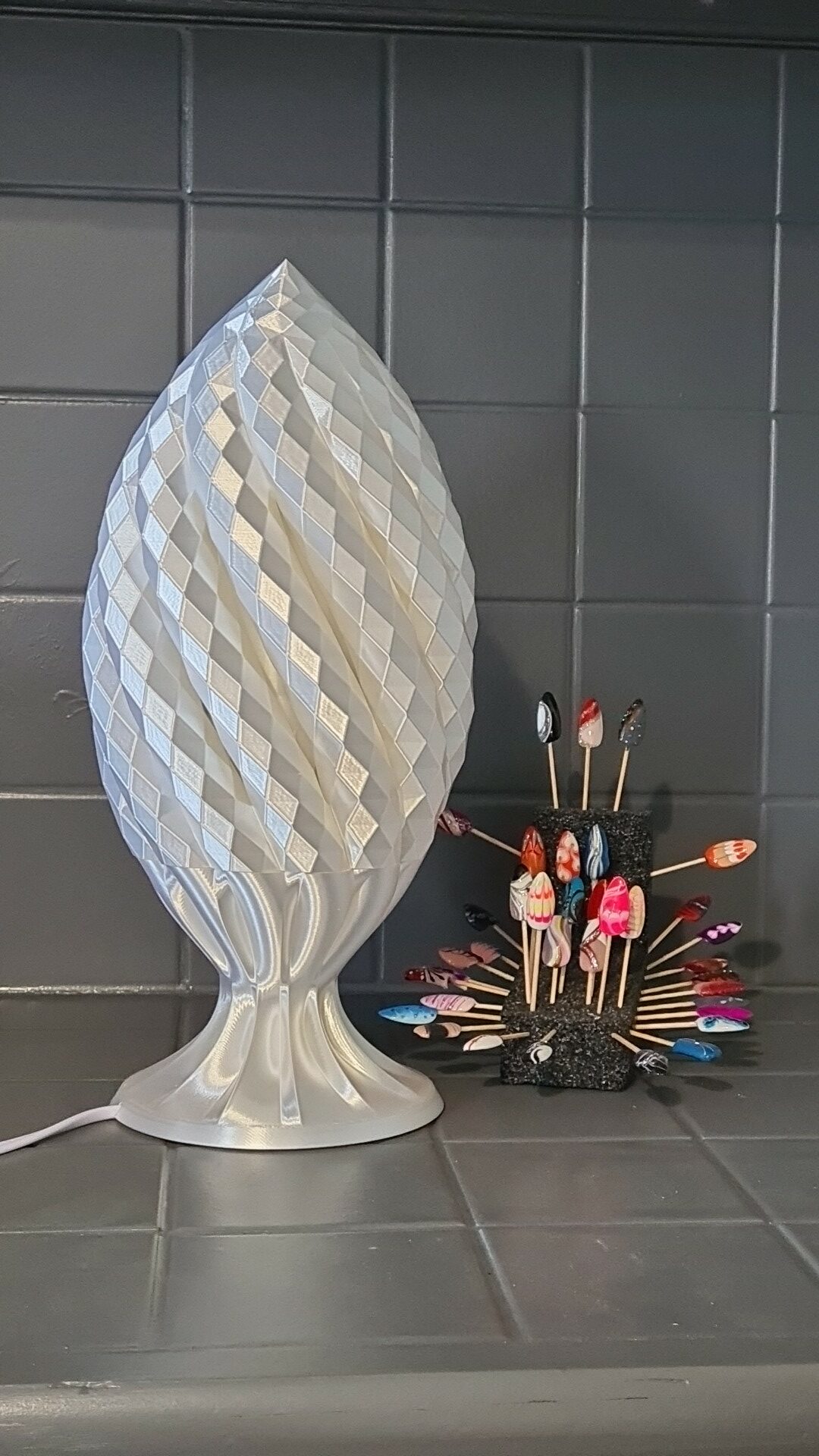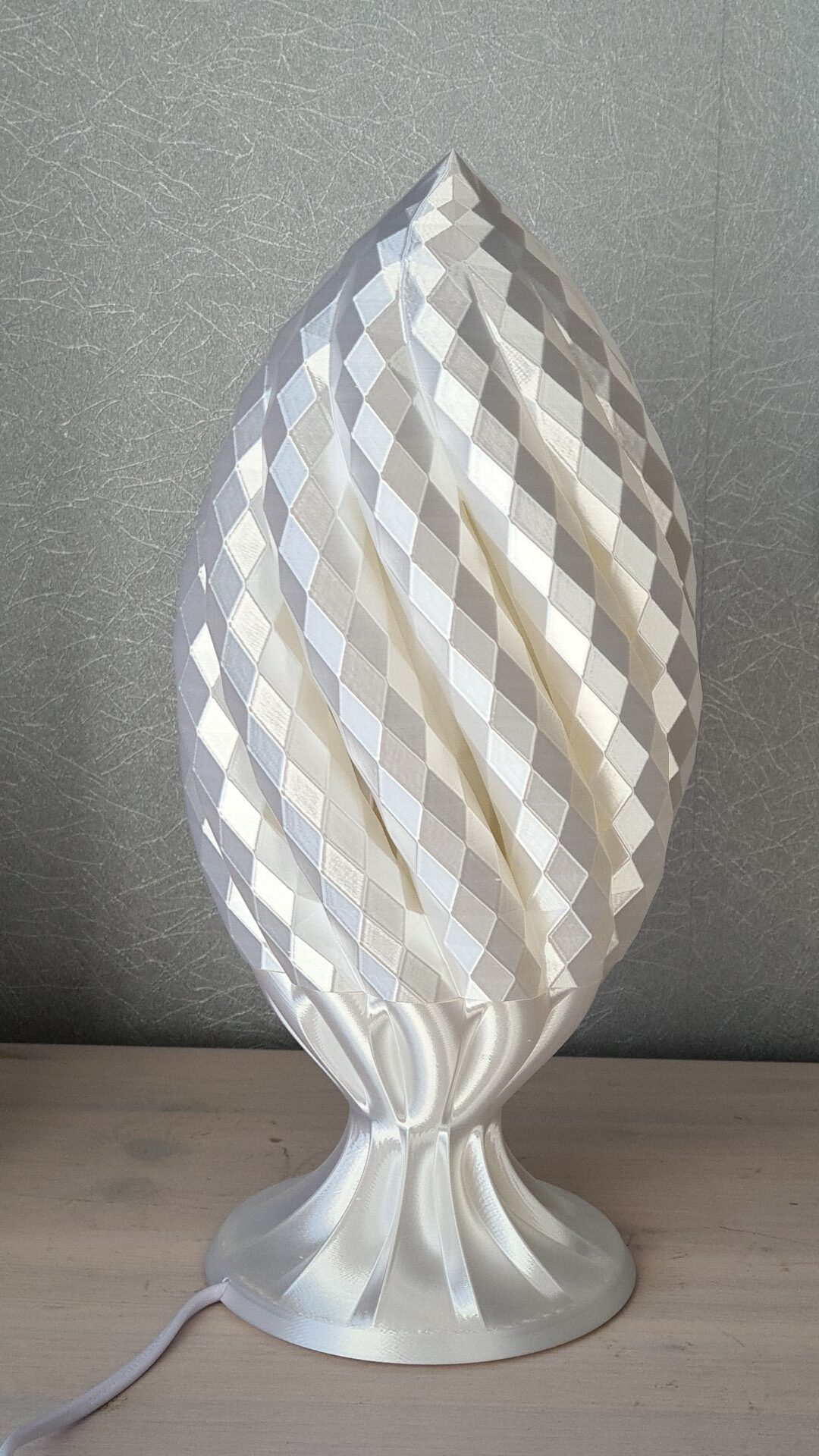 Apportez une ambiance douce et élégante à votre intérieur avec cette lampe de chevet design de 35 cm, entièrement réalisée en impression 3D.